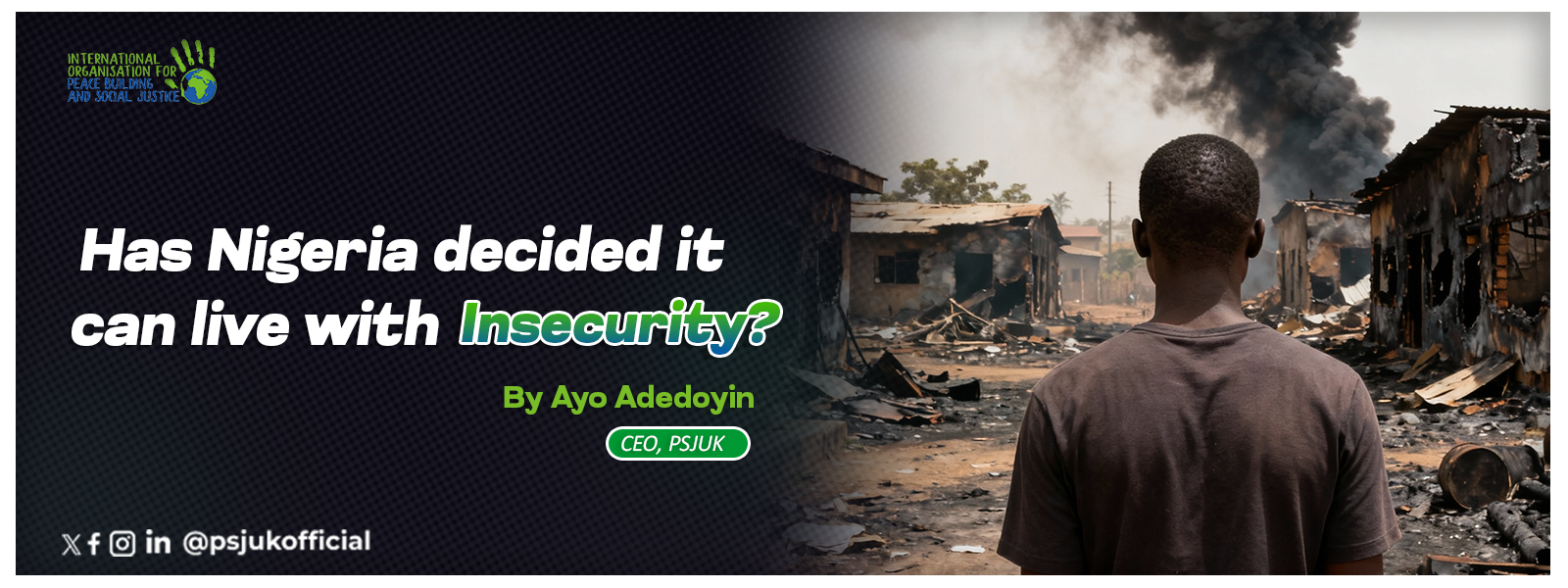 International Organisation for Peace Building & Social Justice (PSJ UK) is a UK-based advocacy movement mobilising the Nigerian diaspora and global partners to confront violence, persecution, and systemic injustice in Nigeria. Through research, media advocacy, community action, and strategic engagement with policymakers, PSJ UK amplifies the voices of victims and drives coordinated action for peace, justice, and accountability.